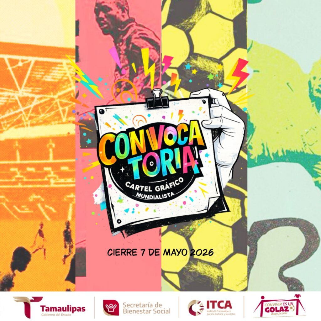 Ciudad Victoria, Tamaulipas.– En el marco del Mundial Social 2026 y con el objetivo de impulsar el desarrollo artístico en la entidad, el Gobierno del Estado de Tamaulipas, a través de la Secretaría de Bienestar Social y el Instituto Tamaulipeco para la Cultura y las Artes (ITCA), mantiene abiertas dos convocatorias dirigidas a artistas gráficos, ilustradores, fotógrafos y creadores visuales en general, como parte del programa “Convivir es un golazo”.