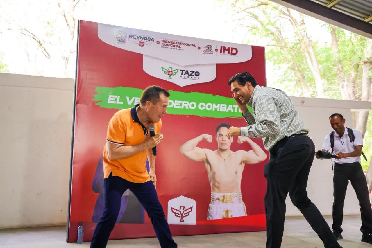 Reynosa, Tamaulipas.- La pelea más grande, más dura; fue abajo del ring, y la he librado», dijo el Campeón Mundial Julio César Chávez, en su conferencia motivacional El Verdadero Combate, en la que estuvo acompañado por el Presidente Municipal Carlos Peña Ortiz, frente a los alumnos del CETIS 131, que dirige el Dr. Enrique Cuevas Nolasco.