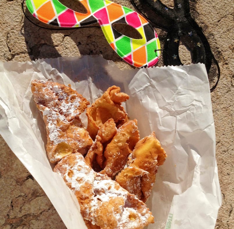En Italia, los carnavales de Venecia y Viareggio se acompañan de dulces como las chiacchiere y los castagnole, pequeñas frituras espolvoreadas con azúcar, que se disfrutan con vino o licores locales.