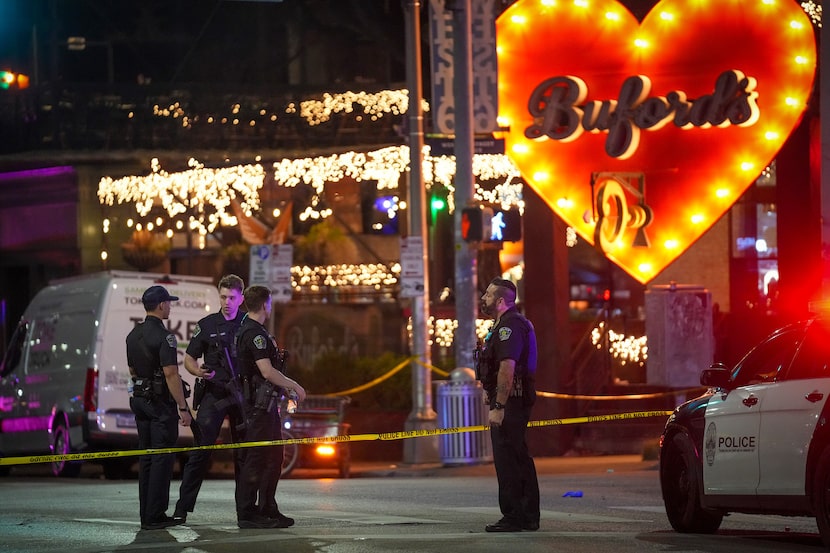 La zona de Sixth Street, conocida por su intensa vida nocturna, fue acordonada durante varias horas mientras peritos y agentes federales recababan evidencias.