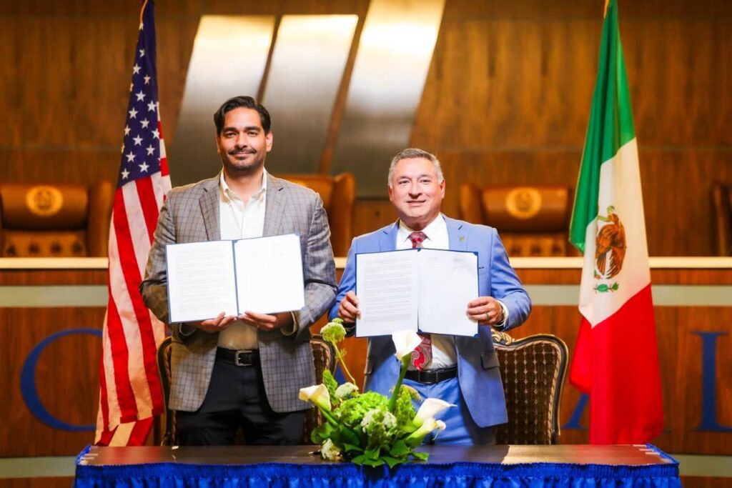 McAllen, Texas.- El Presidente Municipal de Reynosa, Carlos Peña Ortiz, reafirmó el interés de su Gobierno por fortalecer los lazos comerciales con McAllen, Texas, destacando las ventajas estratégicas de ser dos ciudades hermanas entre Estados Unidos y México y firmó en el City Hall de la ciudad texana una actualización del Hermanamiento con Javier Villalobos, Mayor de la vecina localidad.