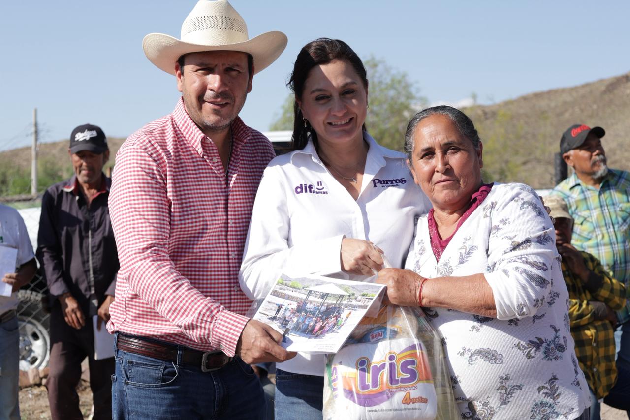 Parras, Coahuila de Zaragoza.- Con una estrategia de atención social enfocada en los sectores más sensibles, el alcalde Fernando Orozco Lara y la presidenta honoraria del DIF Parras, Palhoma Riojas Ramos, encabezaron una brigada comunitaria en el ejido El Mesteño, donde se realizó la entrega de apoyos alimentarios del programa AMA.
