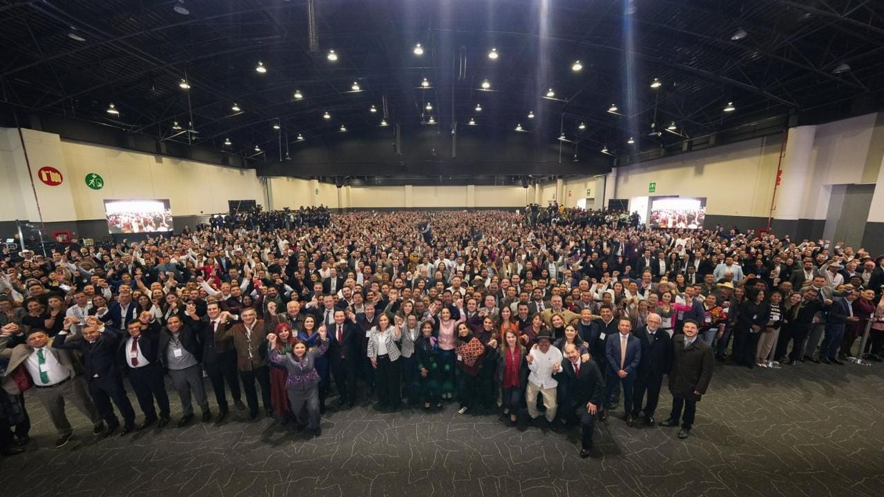 Ciudad de México.- La presidenta Claudia Sheinbaum Pardo encabezó un histórico encuentro en el World Trade Center de la Ciudad de México, donde se reunieron su gabinete, la jefa de Gobierno de la Ciudad de México, Clara Brugada Molina, los 31 gobernadores y los dos mil 475 alcaldes de todo el país.