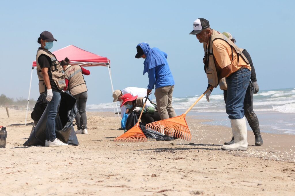 Las labores se realizan de manera coordinada con brigadas de Empleo Temporal de la SEDUMA, integradas por habitantes de La Pesca capacitados por la Procuraduría Federal de Protección al Ambiente (PROFEPA) en el manejo de residuos de hidrocarburo. A estas acciones se suman personal de la Secretaría de Bienestar y elementos de la Secretaría de Marina, quienes llevaron a cabo un barrido manual, para retirar el material detectado.