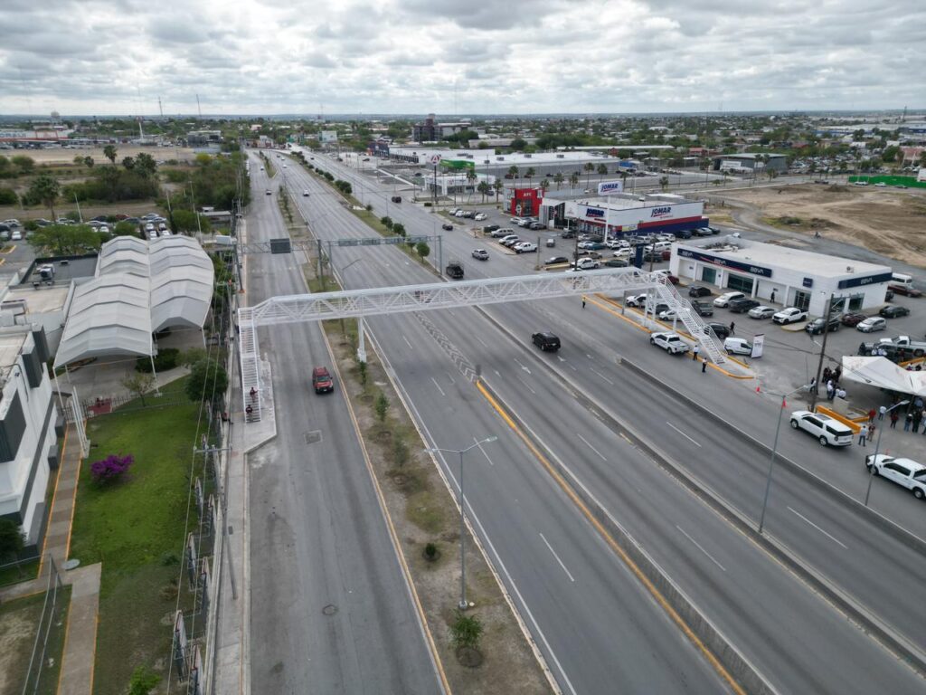 Nuevo Laredo, Tamaulipas.- El Gobierno Municipal encabezado por la alcaldesa Carmen Lilia Canturosas Villarreal concretó la reubicación de un puente peatonal sobre la Calzada de los Héroes, entre Manuel Ávila Camacho y Eva Sámano, frente al Parque Industrial J.
