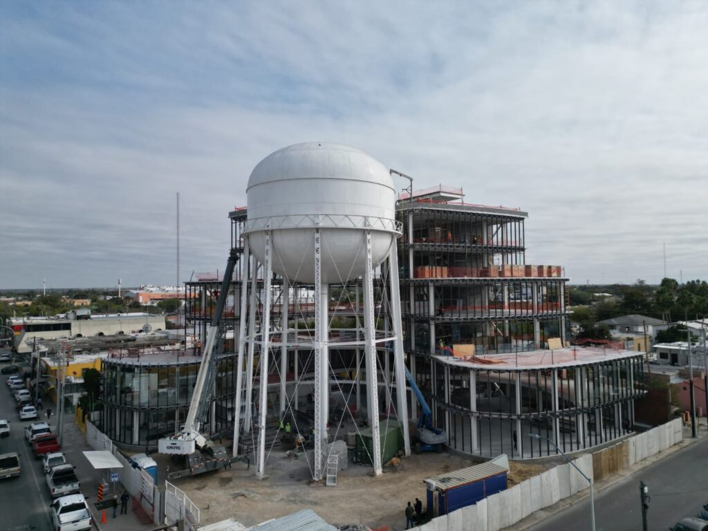 Nuevo Laredo, Tamaulipas.- La alcaldesa Carmen Lilia Canturosas Villarreal supervisó los avances del Museo de Ciencia y Tecnología, una obra estratégica que perfila a la ciudad como polo educativo y científico de la región fronteriza, al integrar un planetario dentro del histórico tanque elevado, en una apuesta que fusiona patrimonio urbano con innovación.