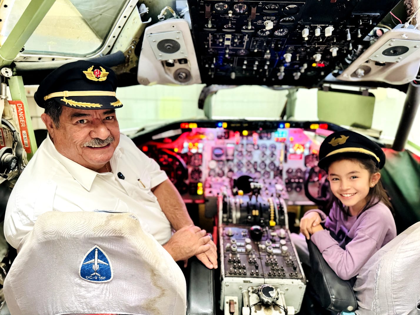 La entrevista con el capitán se hizo dentro de la cabina de un DC-9 que está instalada en su casa.