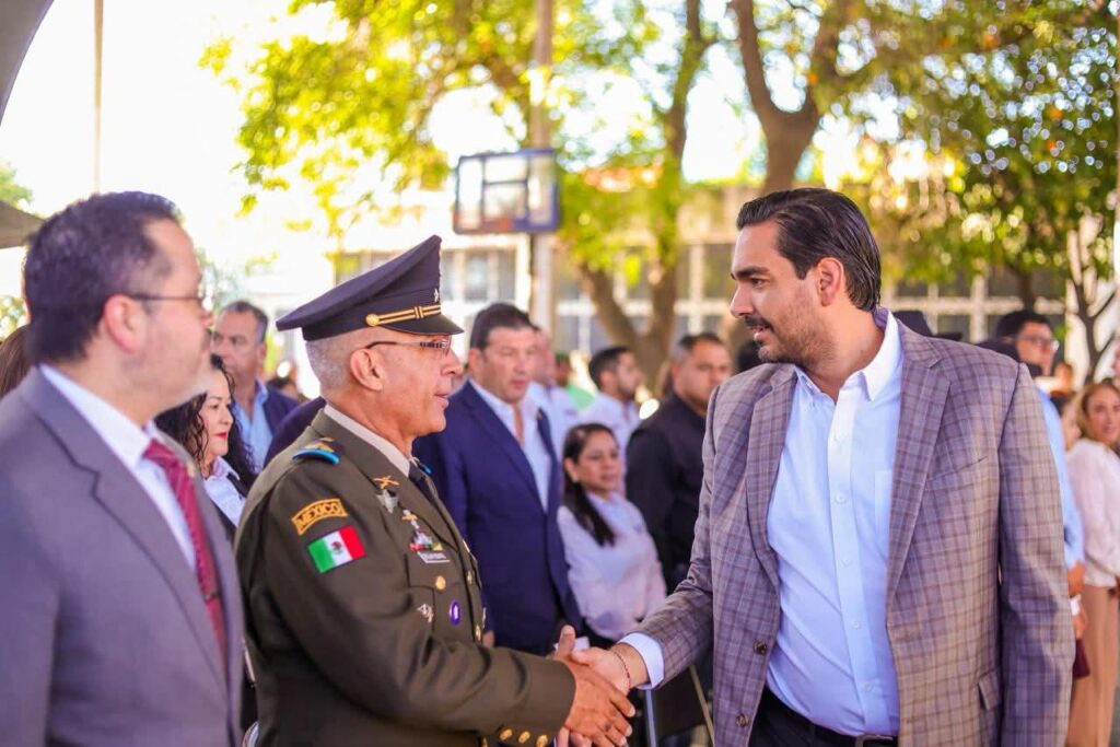 Conmemorando el Aniversario del Natalicio de Don Benito Juárez, el Alcalde Carlos Peña Ortiz presidió la ceremonia llevada a cabo con la participación de la Diputada Federal Claudia Alejandra Hernández Sáenz; Coronel de Caballería Marco Antonio de la Fuente Barragán, comandante del Décimo Noveno Regimiento de Caballería Motorizado; Juan Carlos Zertuche Romero, Diputado Local y el Director de la escuela primaria Benito Juárez, Emmanuel Martínez Hernández.