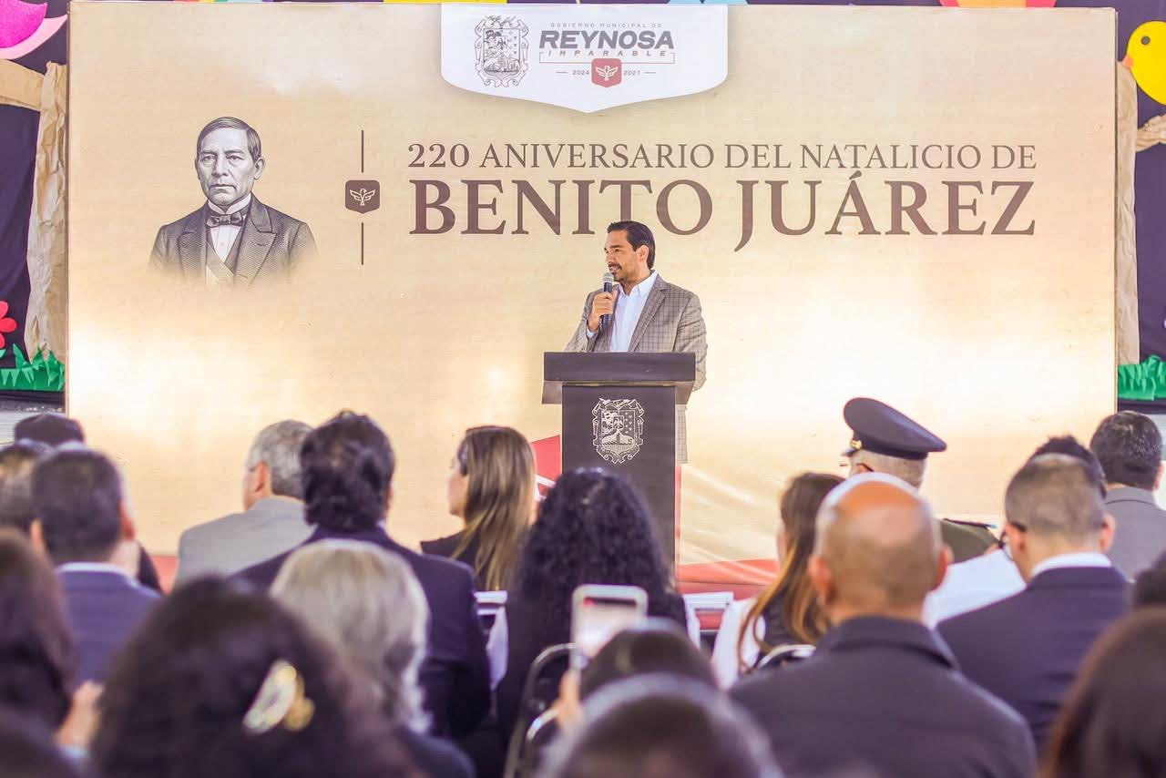 «Hoy conmemoramos a un gran hombre, 220 años del Natalicio de Benito Juárez García, nos recuerda lo importante que es el compromiso que tenemos que tener todos con nuestra patria; los mexicanos tenemos un pedacito de Benito Juárez en nuestro corazón y en nuestra mente y ojalá esa misma visión nos siga guiando por muchos años más», dijo el Presidente Municipal, en presencia de la oradora oficial, señorita Jimena Álvarez Vázquez, de la Secundaria Técnica 44.