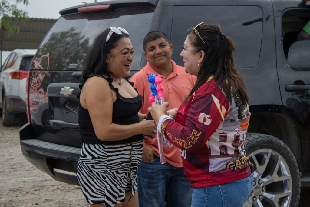Con enfoque de proximidad, la alcaldesa Ernestina Perales Ortiz interactuó directamente con niñas y niños, entregando obsequios y reforzando el mensaje institucional de una administración orientada al bienestar social y la atención ciudadana.