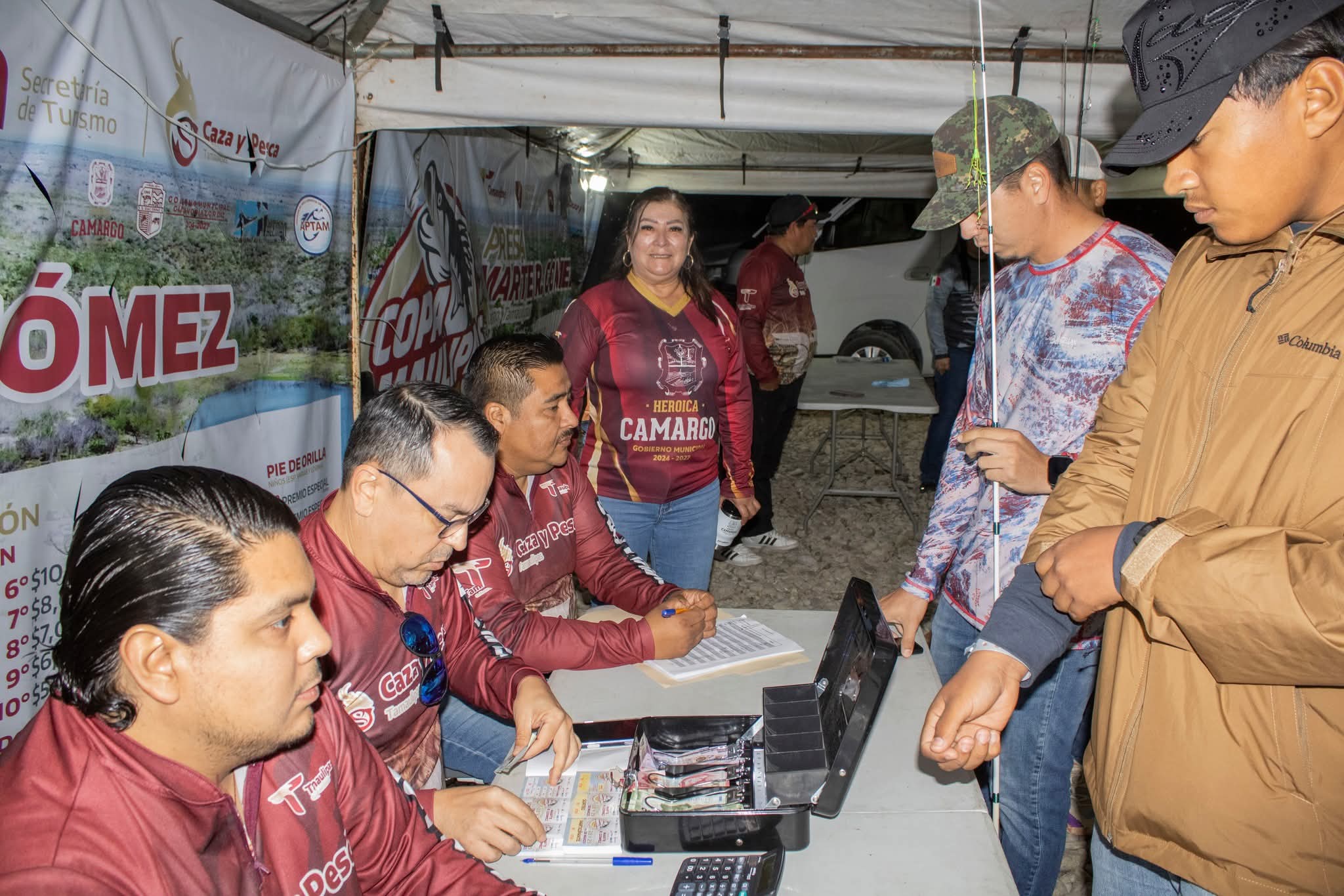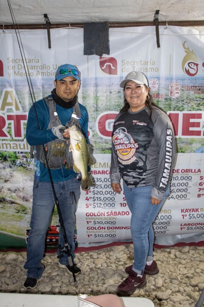 Camargo, Tamaulipas.- La alcaldesa Ernestina Perales Ortiz lideró el registro oficial y el banderazo de salida de la segunda fecha del torneo estatal de pesca deportiva Copa Tamaulipas 2026, consolidando a la presa Marte R. Gómez como un punto estratégico para el turismo deportivo en la región.