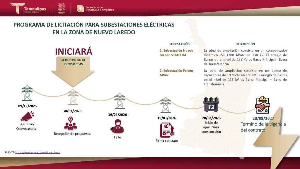Ciudad Victoria Tamaulipas.- Como parte del compromiso estratégico de la Comisión Federal de Electricidad (CFE) para modernizar la red eléctrica nacional, se anunció el inicio del proceso de licitación para obras de infraestructura eléctrica en la ciudad fronteriza de Nuevo Laredo.