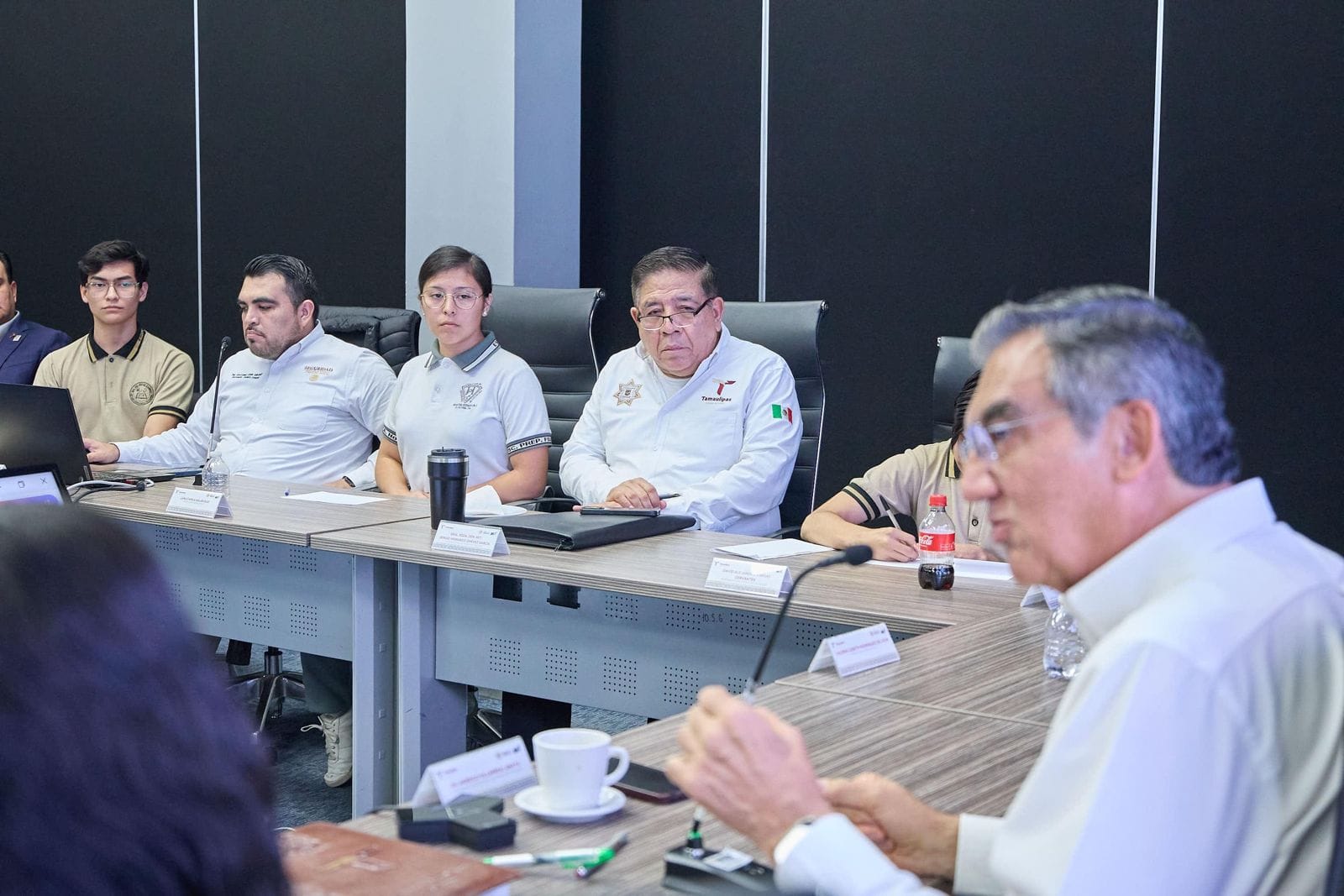 Acompañado por representantes de las fuerzas armadas e integrantes del gabinete de seguridad, el mandatario tamaulipeco destacó que gracias al trabajo diario que se realiza en la Mesa de Coordinación para la Construcción de la Paz, Tamaulipas se ha convertido en uno de los diez estados con menores índices delictivos y es el más seguro de la frontera norte del país.