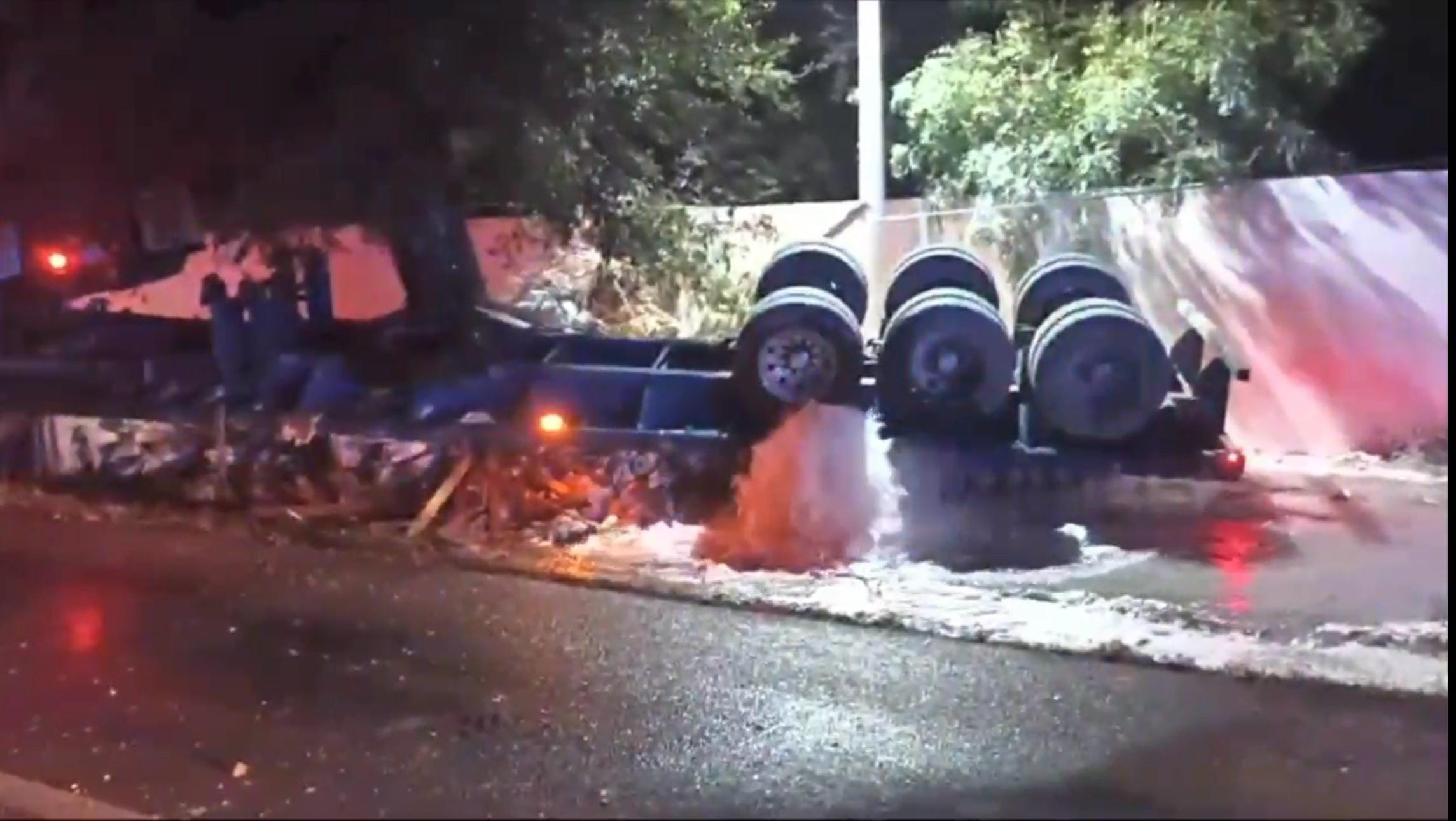 El percance ocurrió cuando un tráiler, que transportaba 36 toneladas de estuco, se impactó contra una válvula expulsora de la red de agua potable, generando una gran fuga.