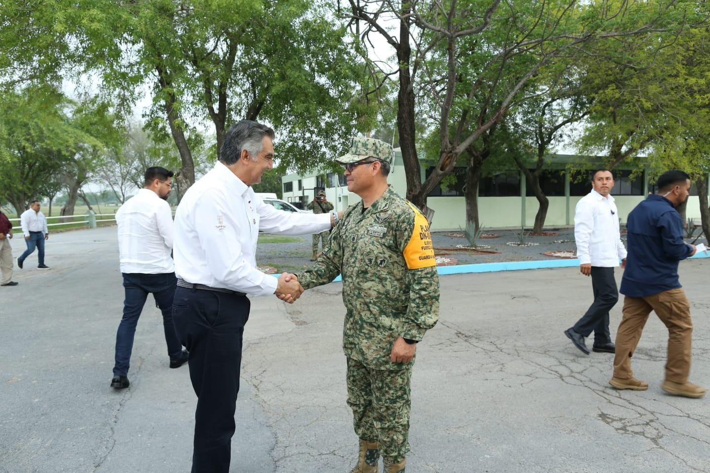Acompañaron al gobernador el general Juan José Gómez Ruiz, comandante de la IV Región Militar; el general Fernando Colchado Gómez, comandante de la 8/a Zona Militar; el general Enrique García Jaramillo, comandante de la 48/a Zona Militar; el contralmirante Víctor Manuel Salas Hernández, comandante del Sector Naval Matamoros, y el coronel Milton Carlos Pantaleón Rocha, comandante del XII Batallón de la Guardia Nacional.