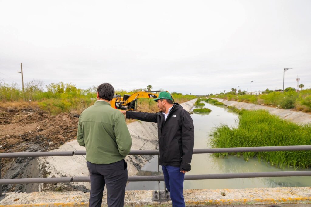 Reynosa, Tamaulipas.- Dando impulso permanente al programa de mantenimiento de la infraestructura hidráulica, el Presidente Municipal Carlos Peña Ortiz supervisó el desazolve del Dren Reynosa, en el tramo de las colonias Miguel Hidalgo, Vicente Guerrero, Ribereña, y Del Valle.